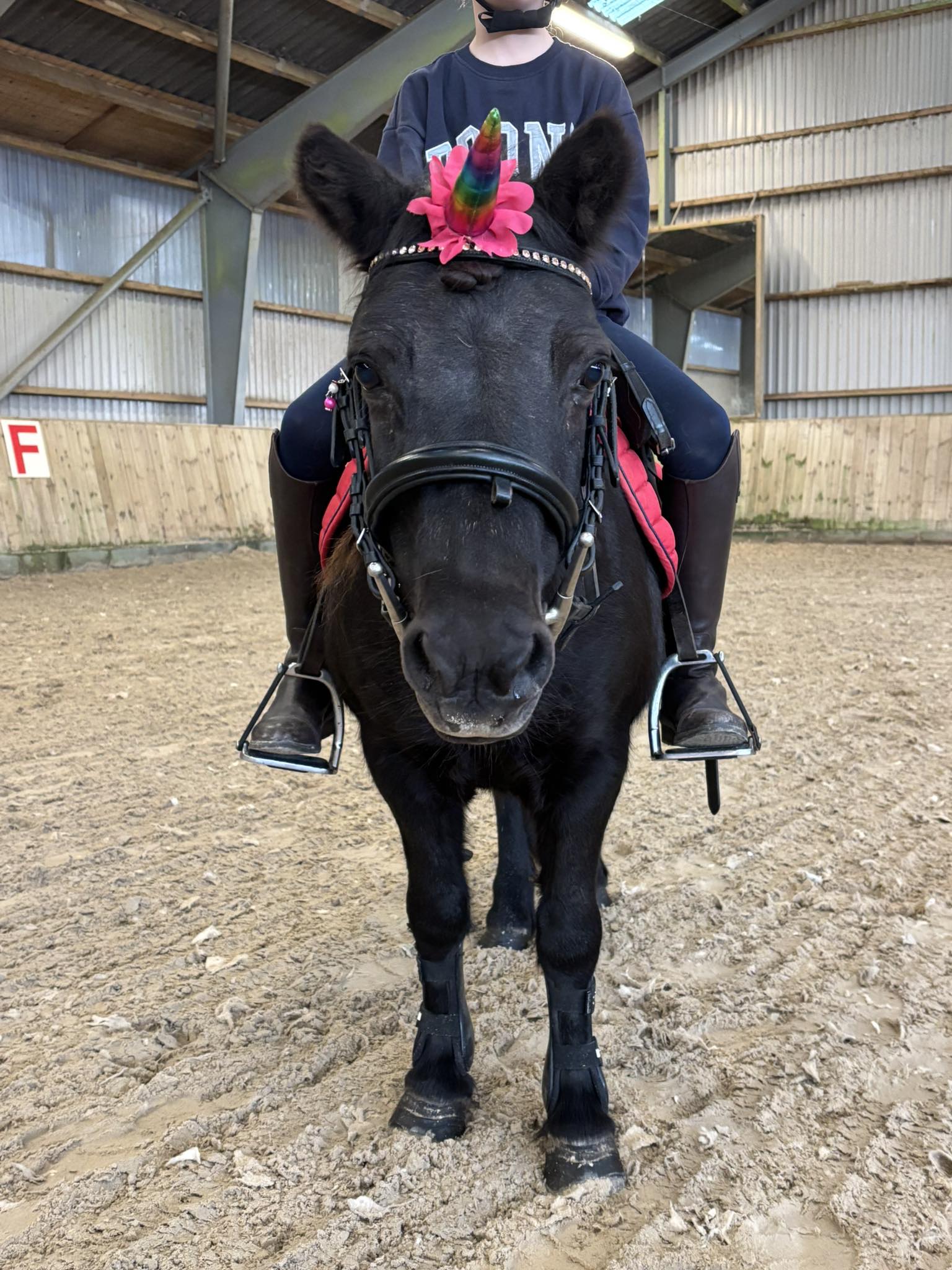 | Blackie Blackie er vores mindste pony. Han er meget sød og elsker at lave noget. Blackie er vores nyeste elevhest og har ikke en part endnu.